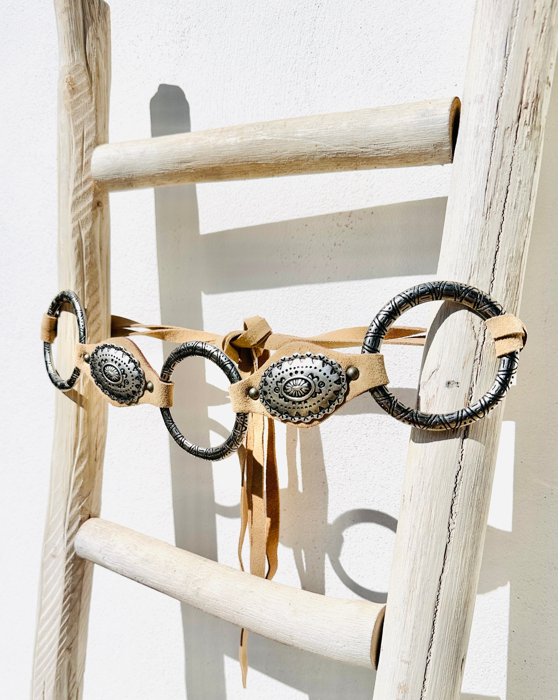 Cinturón de Ante Beauty, ajustable a la cintura o cadera a la medida que tú quieras, cierra con las cintas anudadas. Ideal para completar tus Looks más Boho
