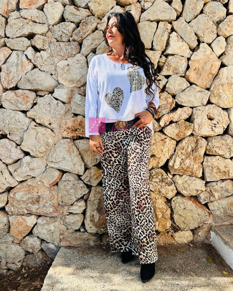 Comodísimo Pantalón estampado animal print, talle recto, lleva goma en la cintura