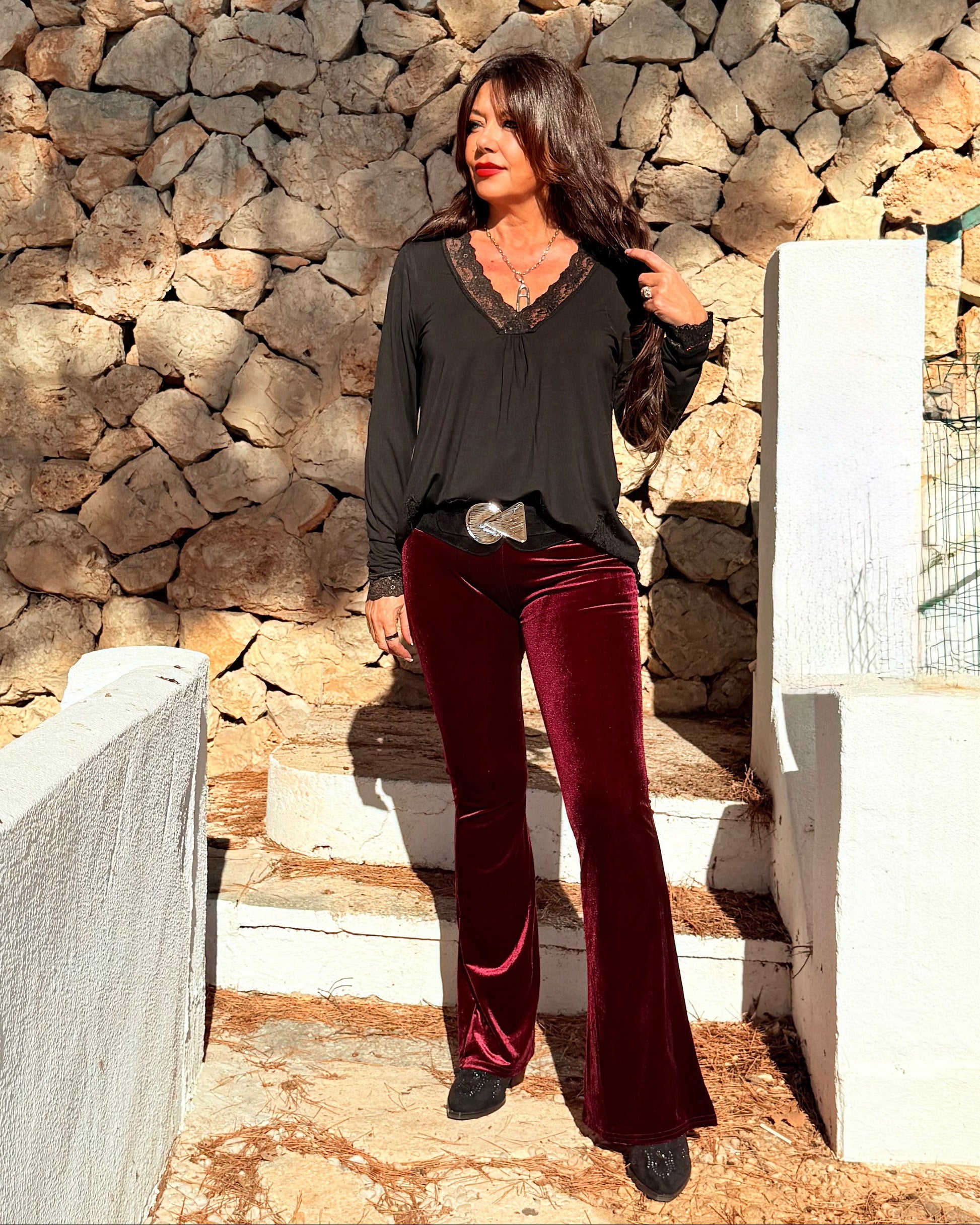 Comodísimo Pantalón Terciopelo, con el bajo acampanado, lleva goma en la cintura