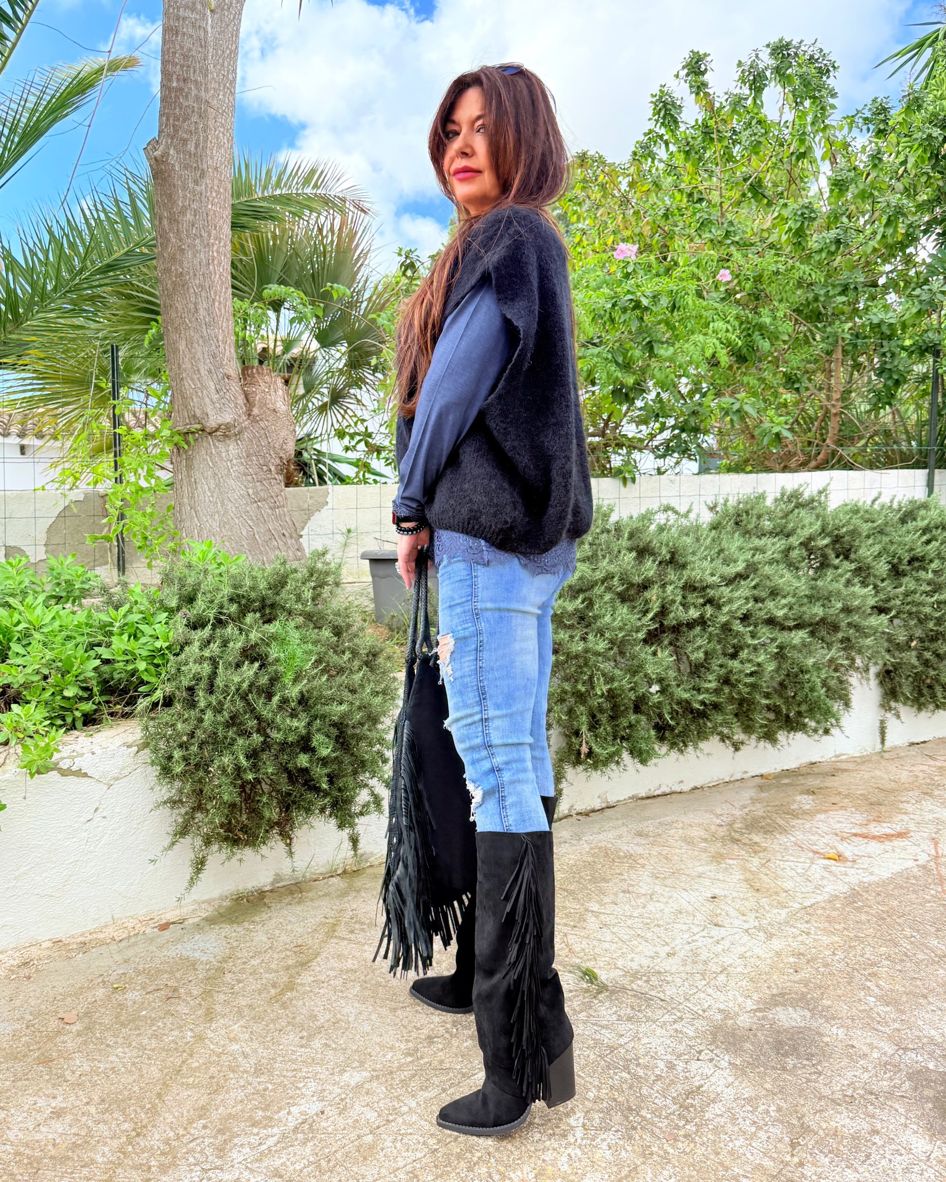Jersey Lay sin mangas y cuello de pico. Ideal para combinar con nuestras Camisetas Lenceras Makena. Tipo oversize