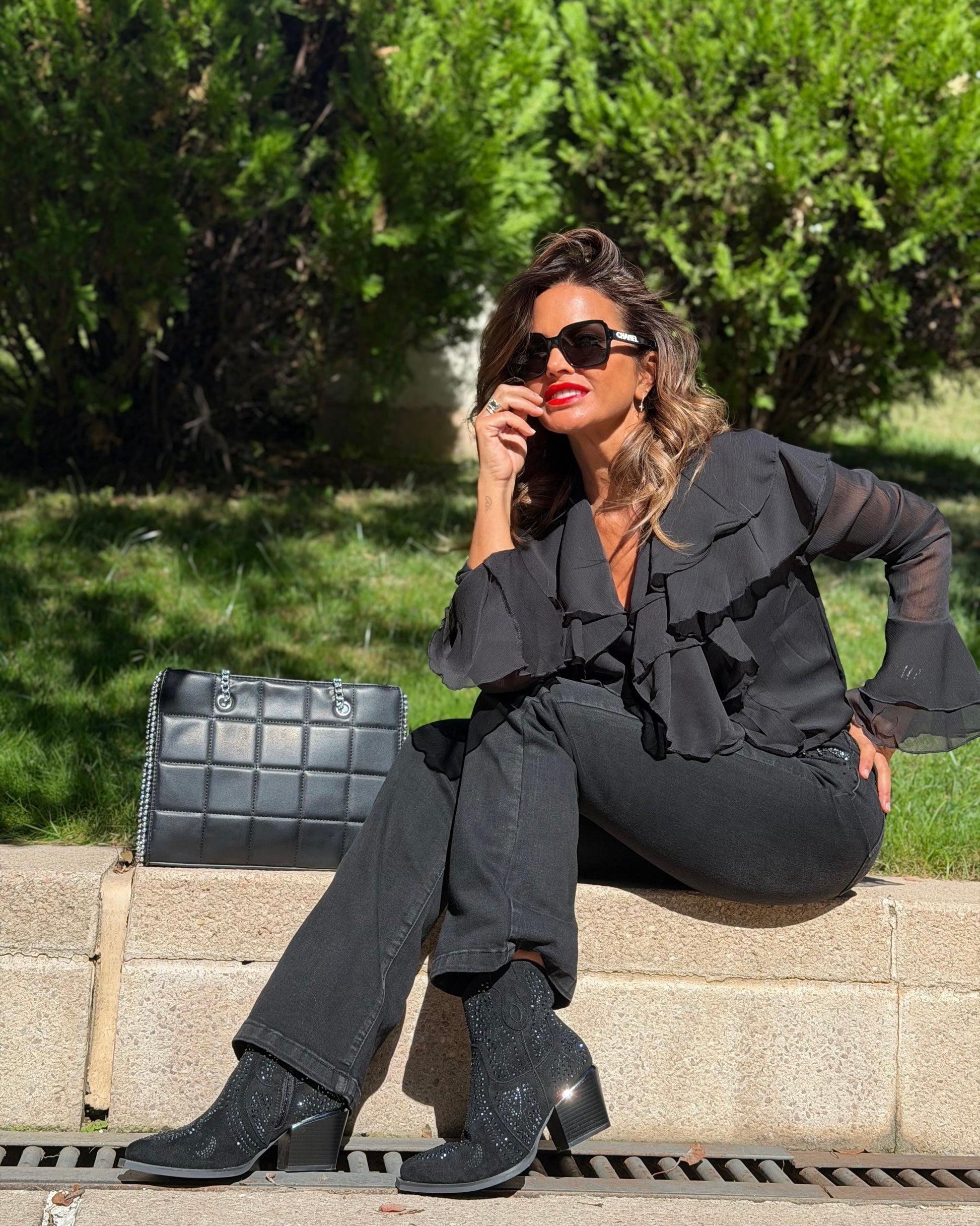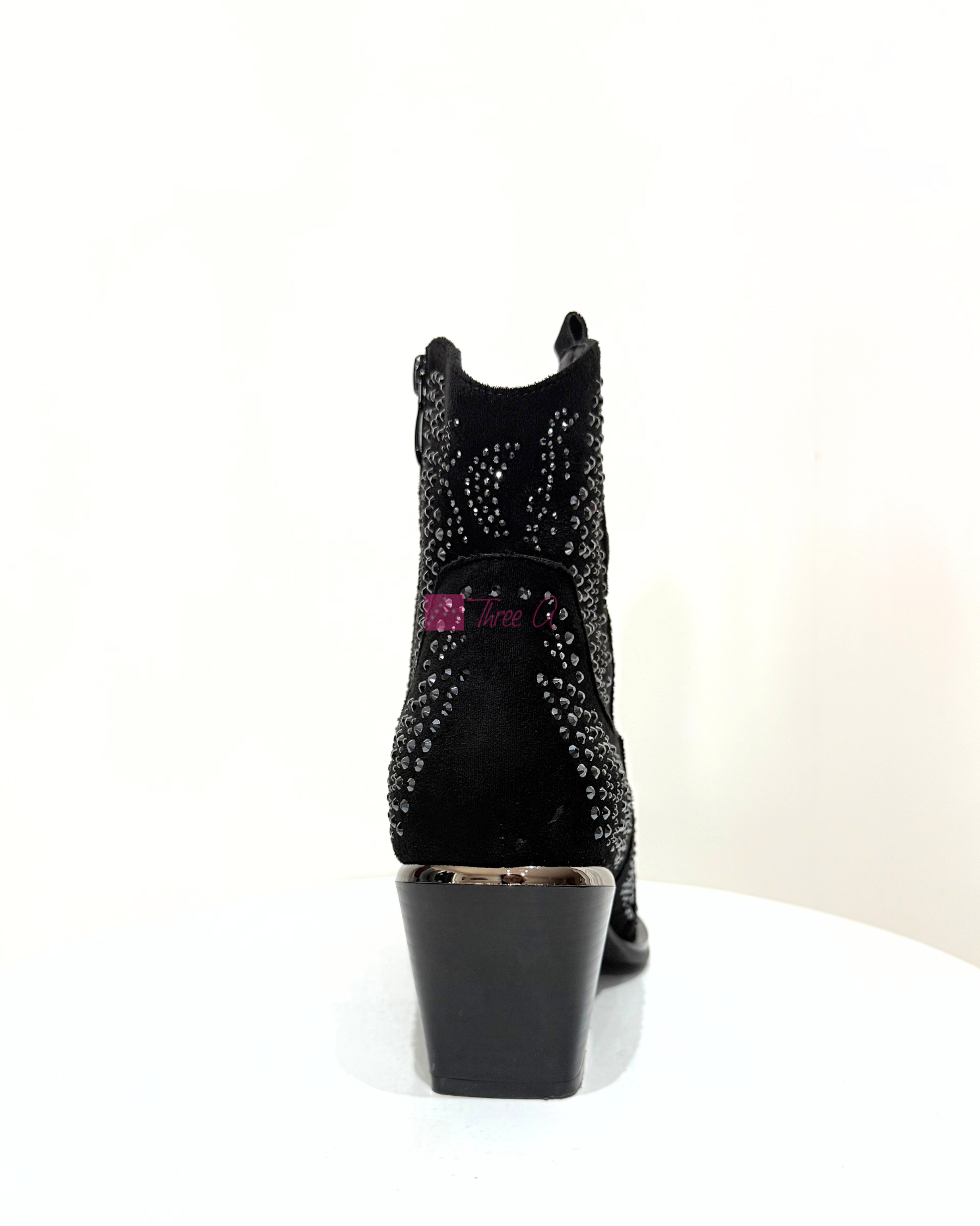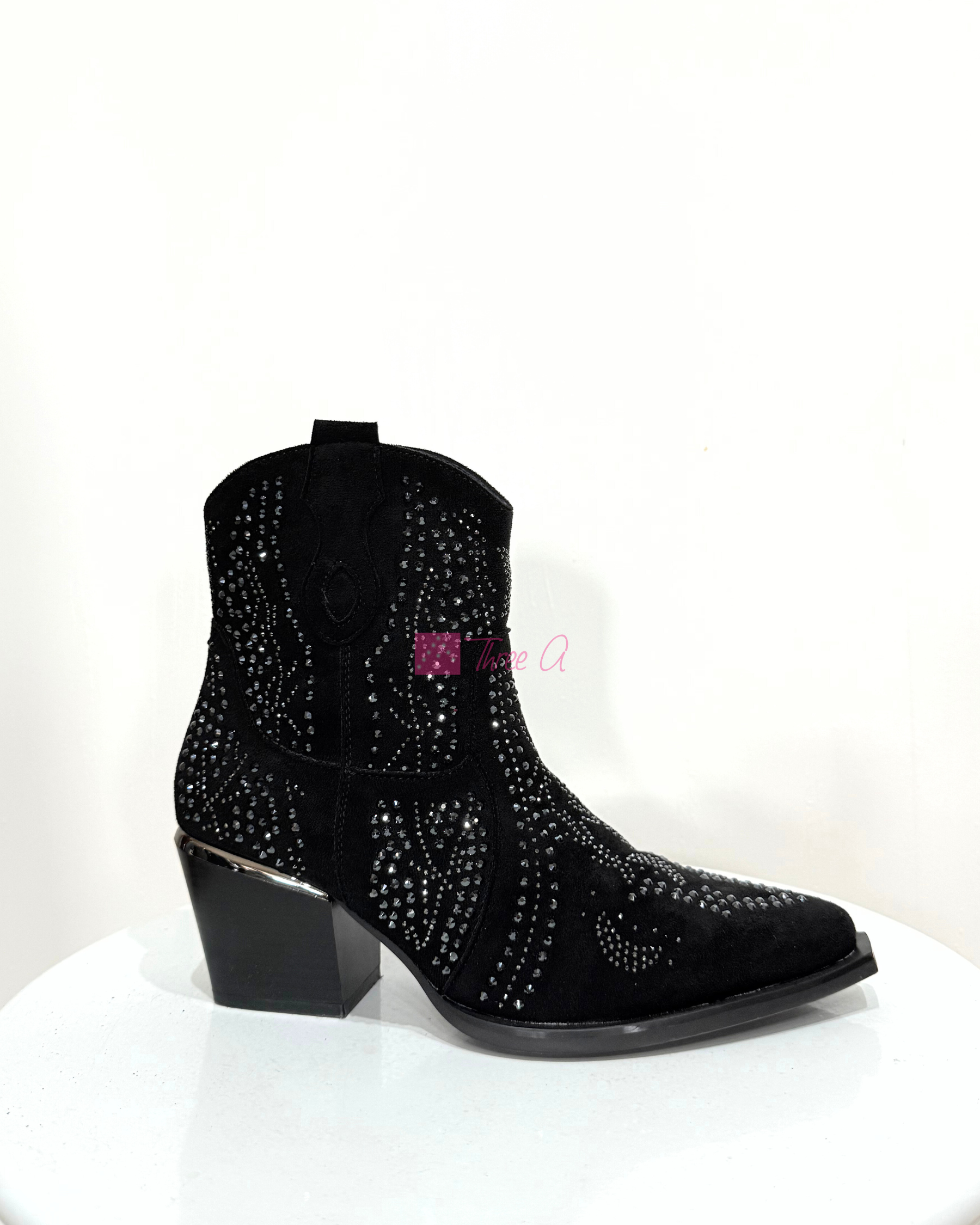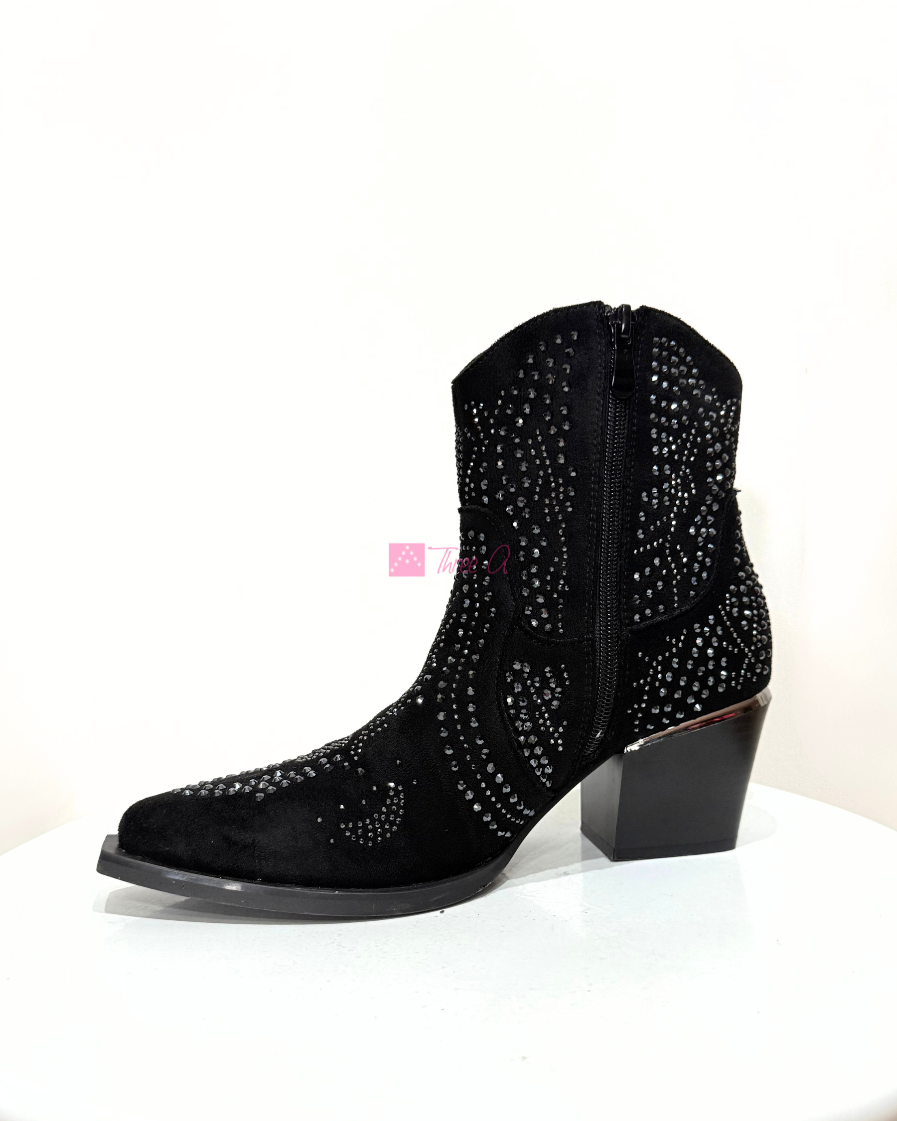 Fantástico Botín Strass con brillantes en negro de Antelina. Cierra con cremallera lateral