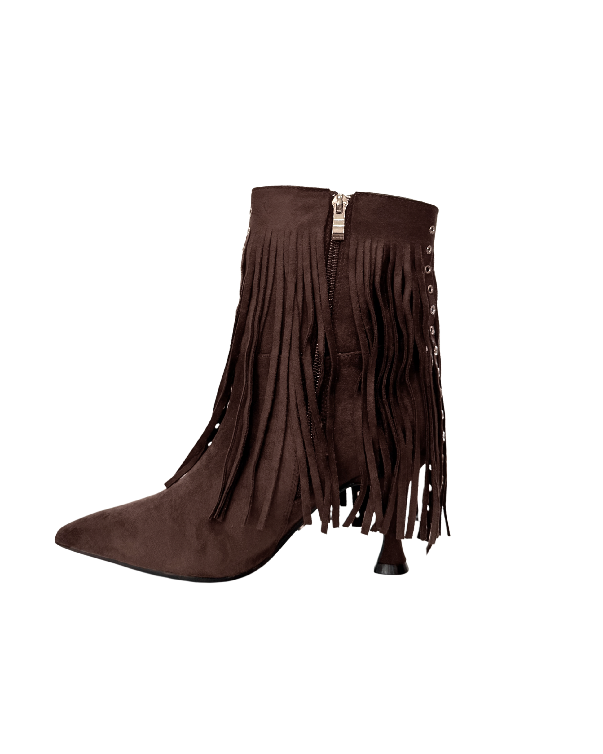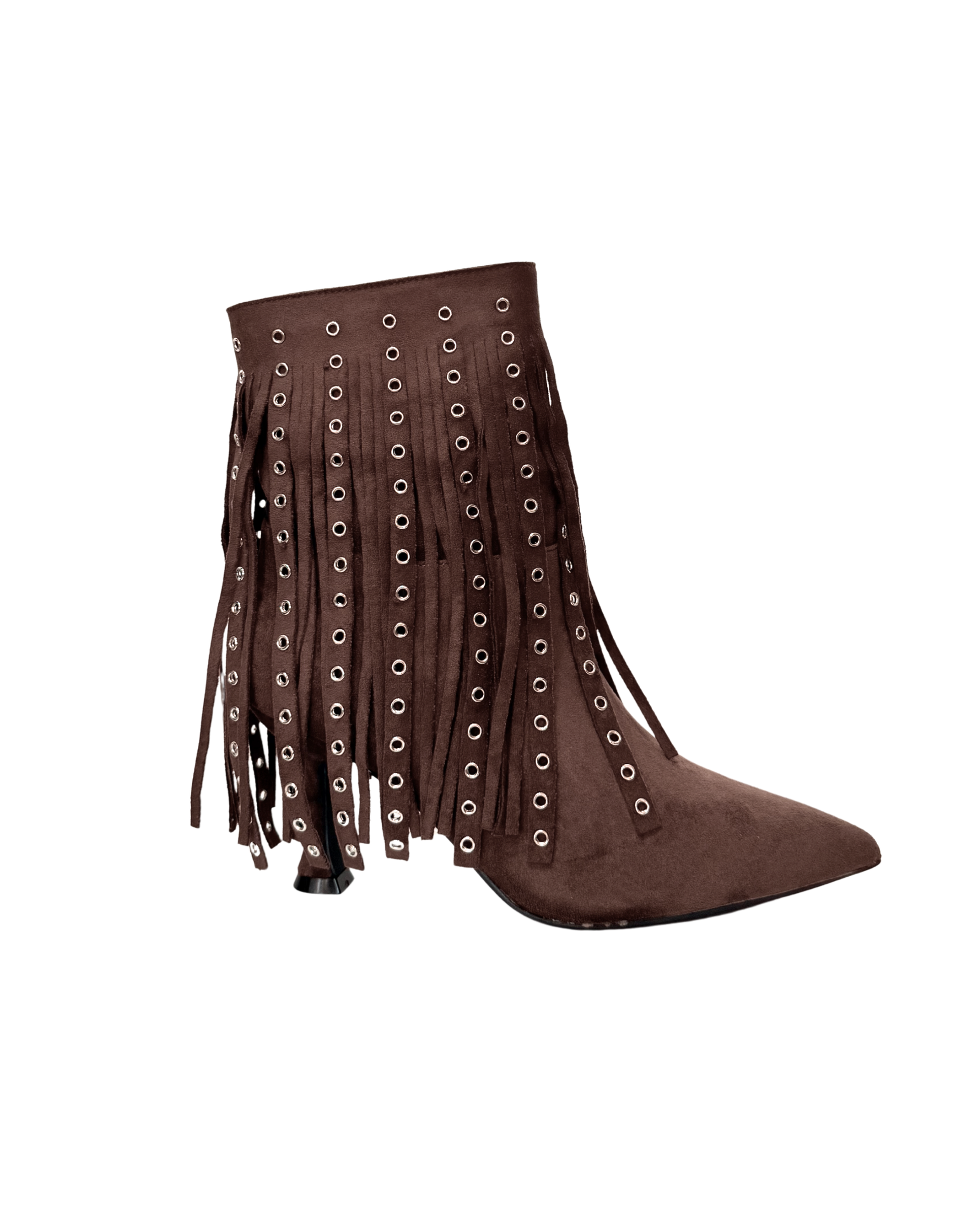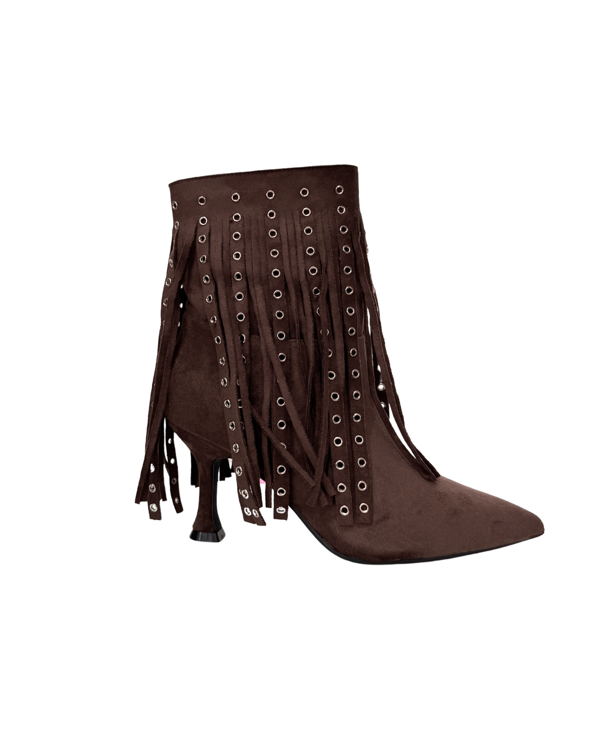 Espectacular Botín Wow de Antelina con flecos y tachuelas. Cierra con cremallera lateral