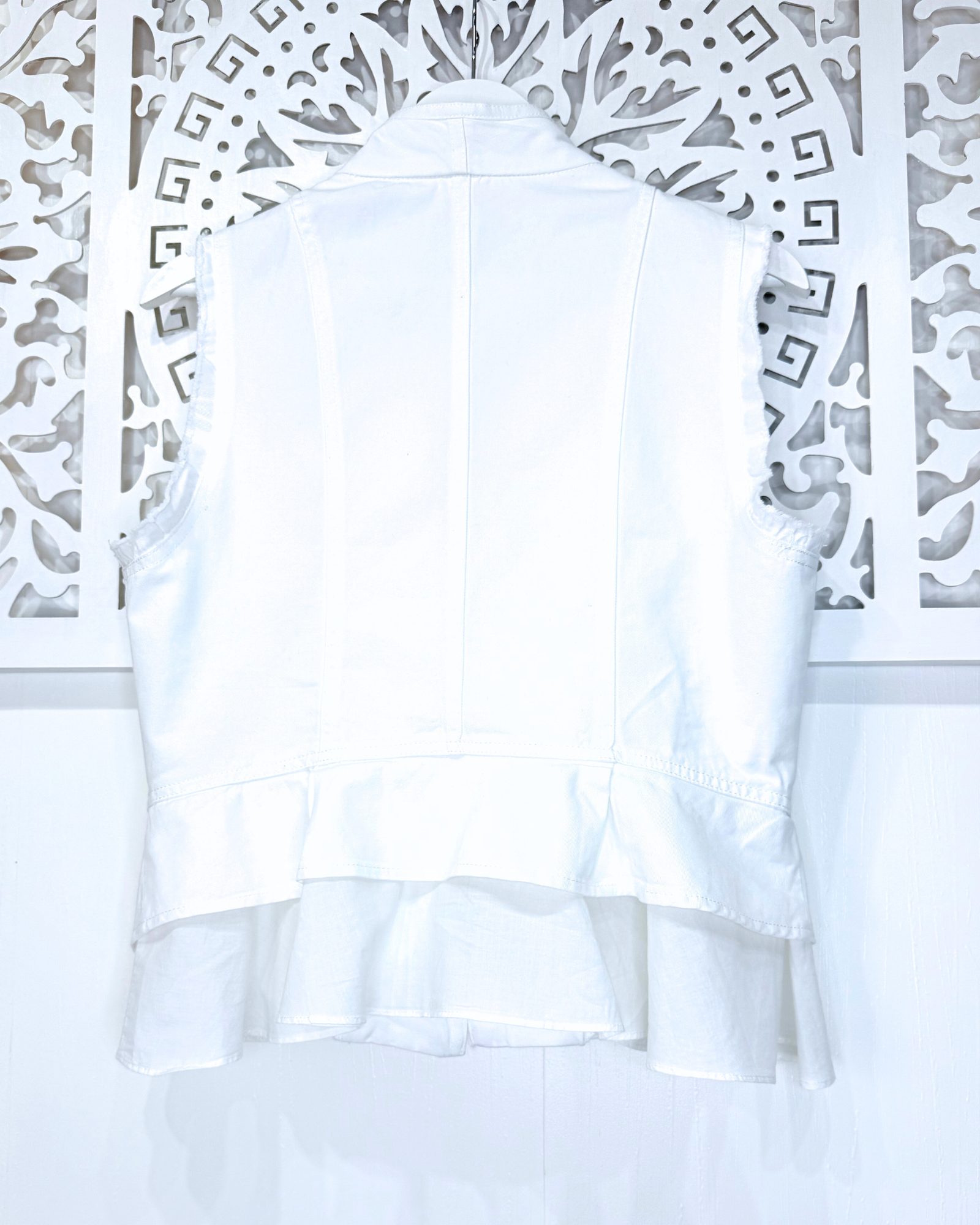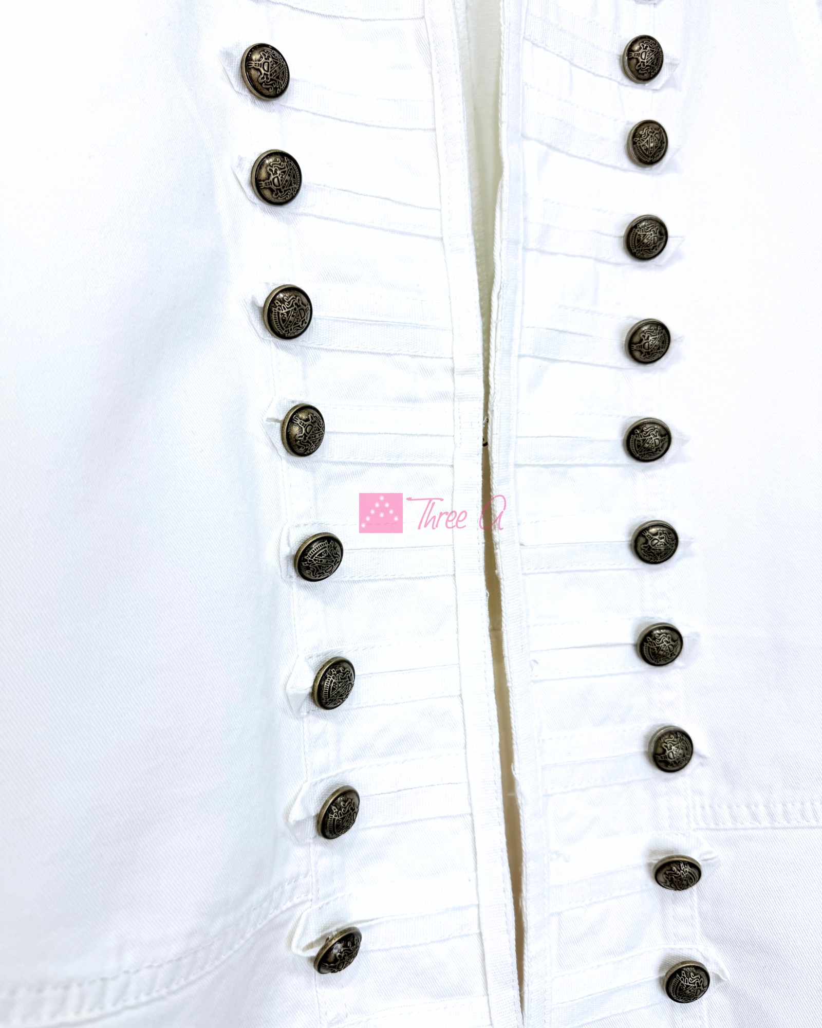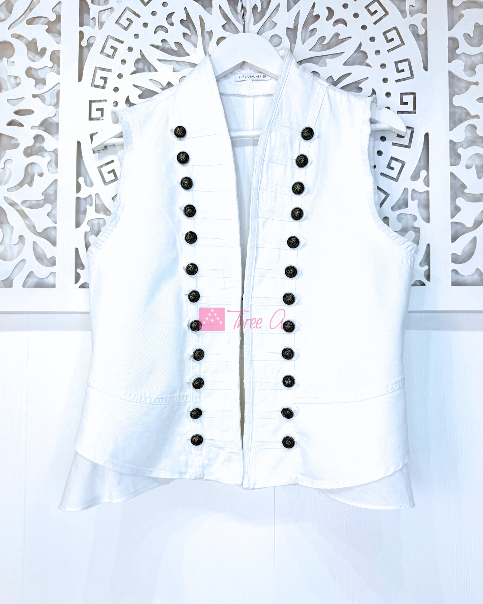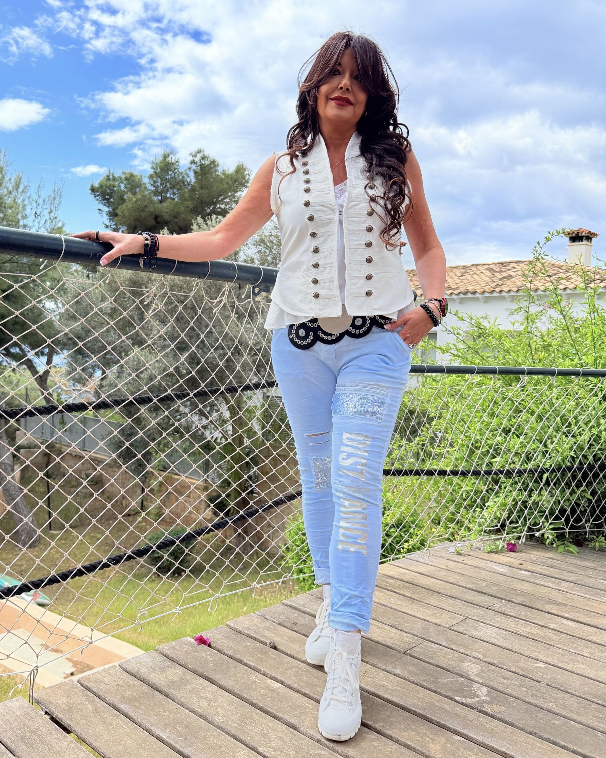 Chaleco Lili con botones decorativos, cierra con corchete. No es elástico