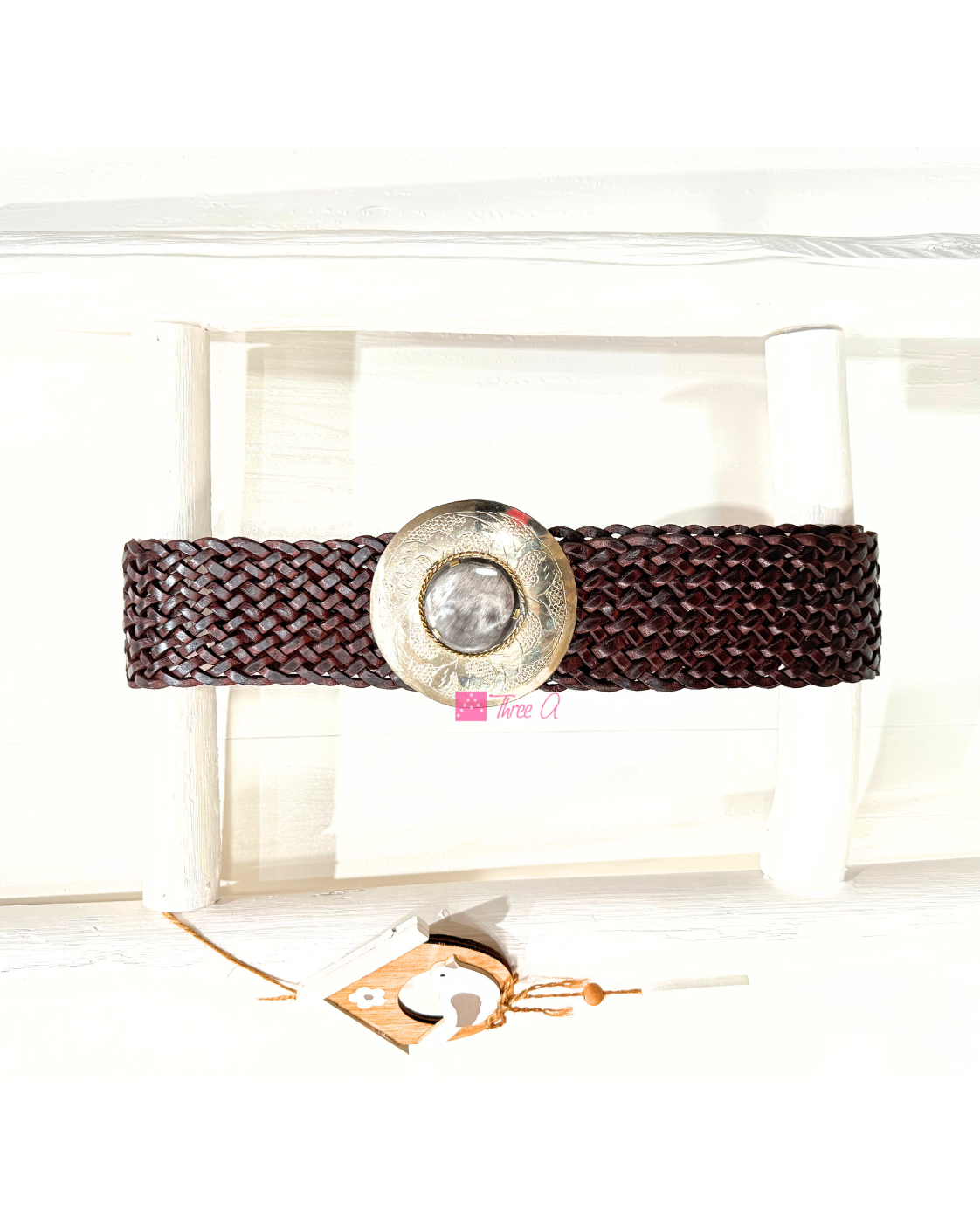 Cinturón de cuero trenzado artesanal. Ajustable a la cintura o cadera a la medida que tú quieras. Detalle hebilla