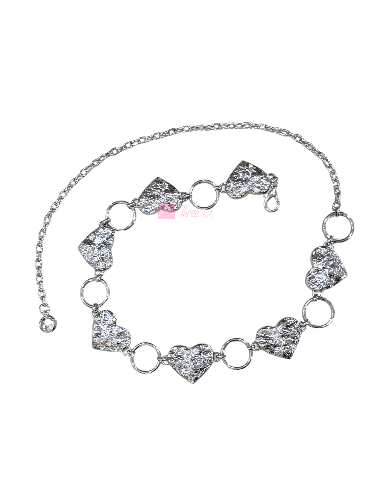 Cinturón Lin de cadena con corazones plata. Ajustable a la cintura o cadera a la medida que tú quieras