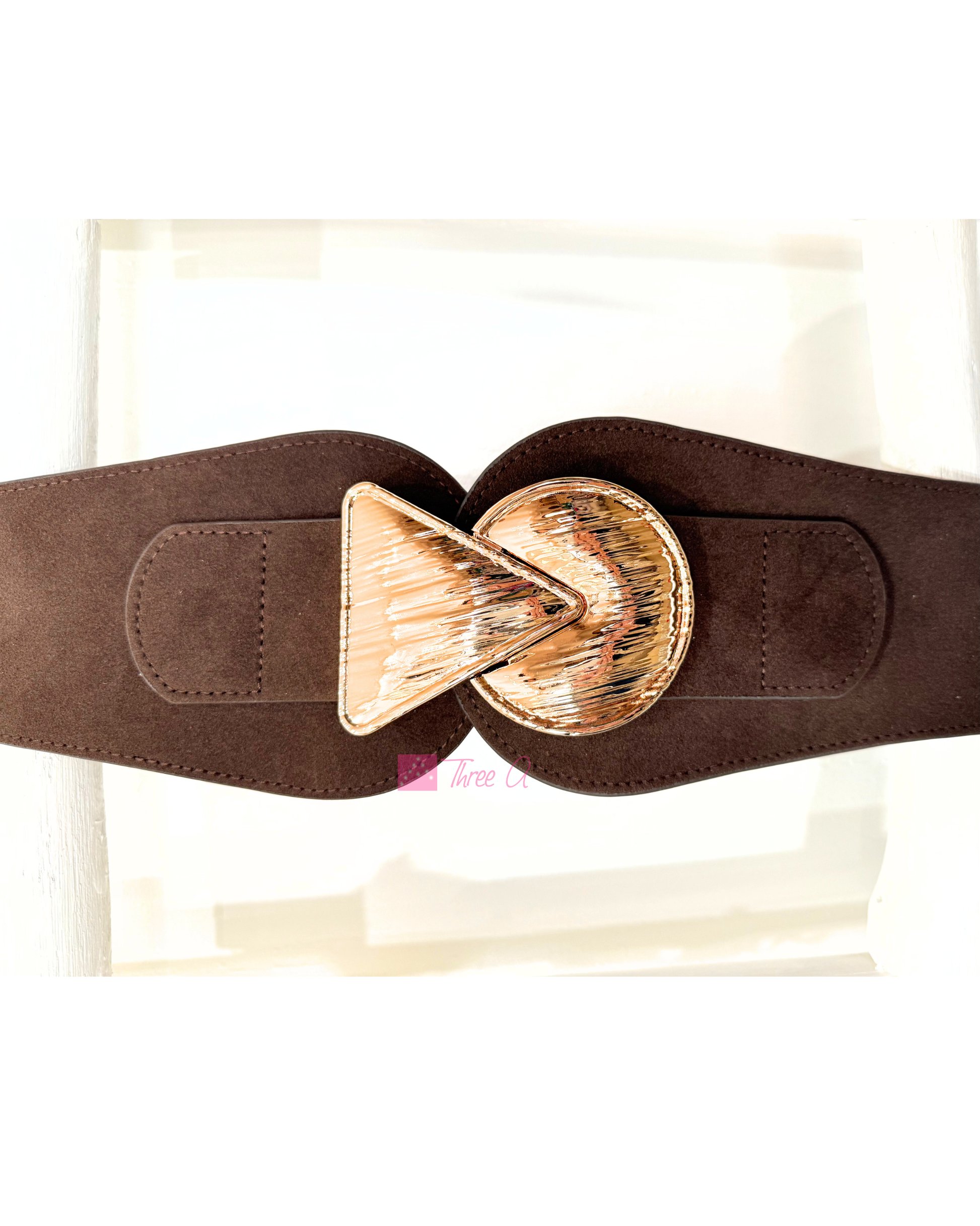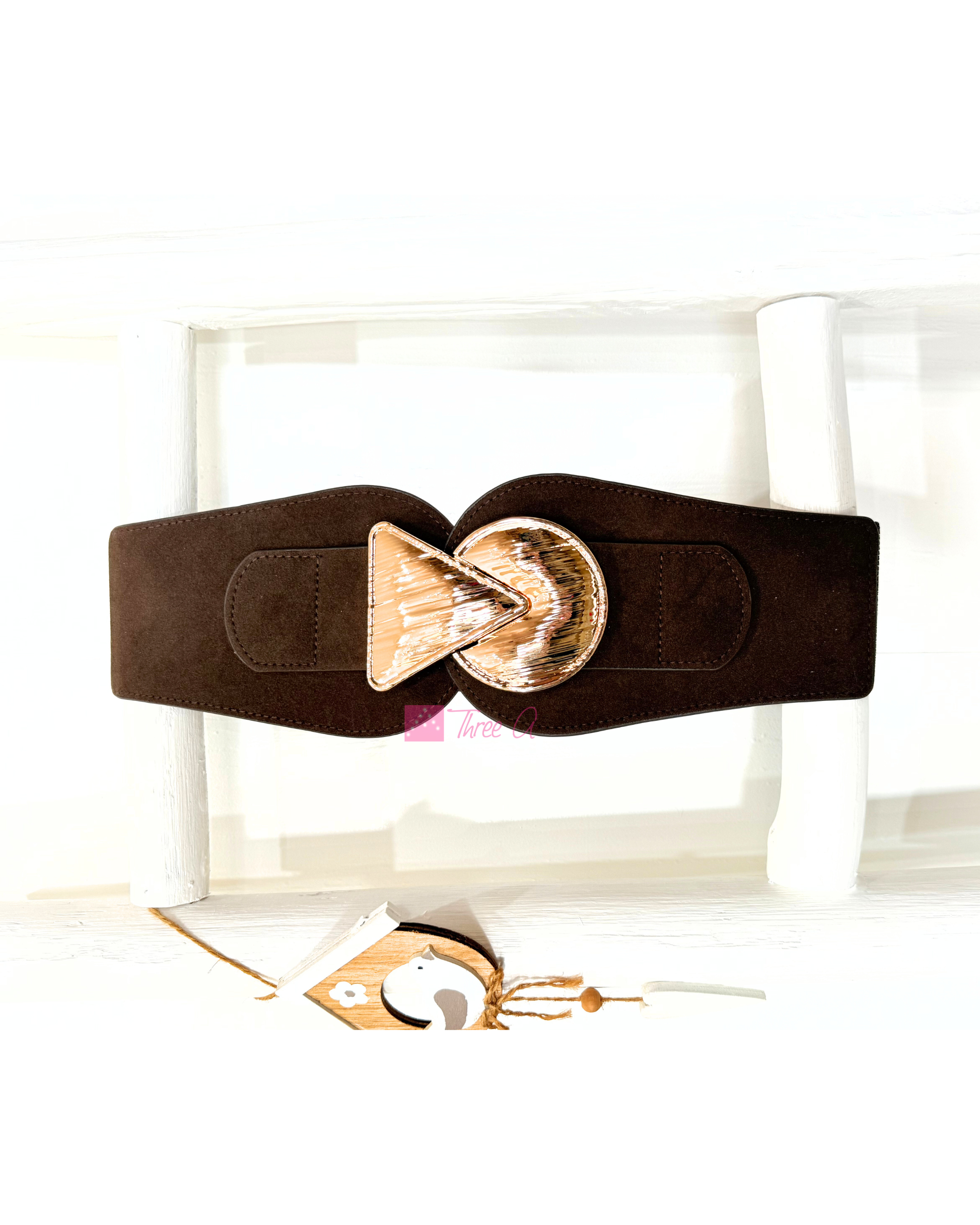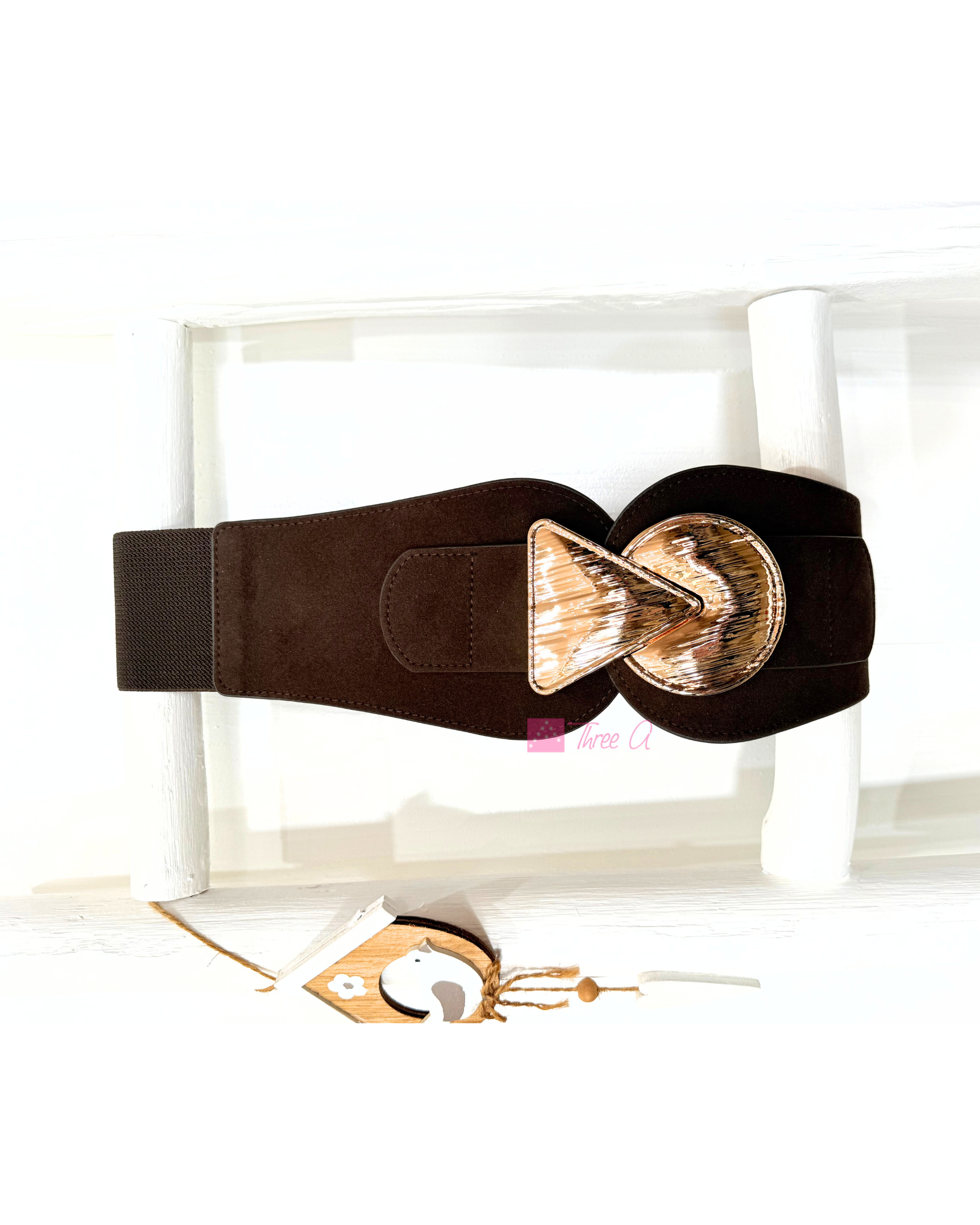 Cinturón de Antelina Nay con detalle central en dorado, ajustable a la cintura, lleva goma en la parte trasera.