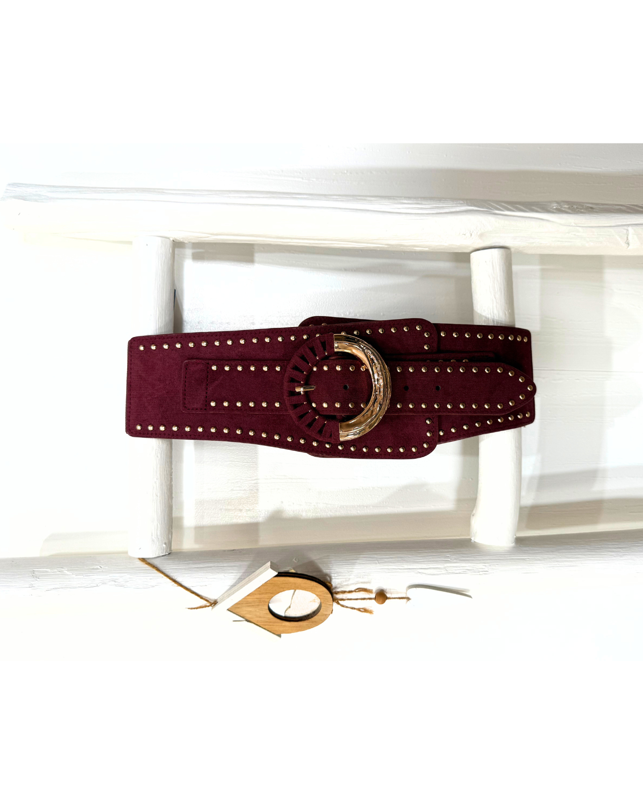 Cinturón de Antelina Tany con tachas, ajustable a la cintura, lleva goma en la parte trasera.