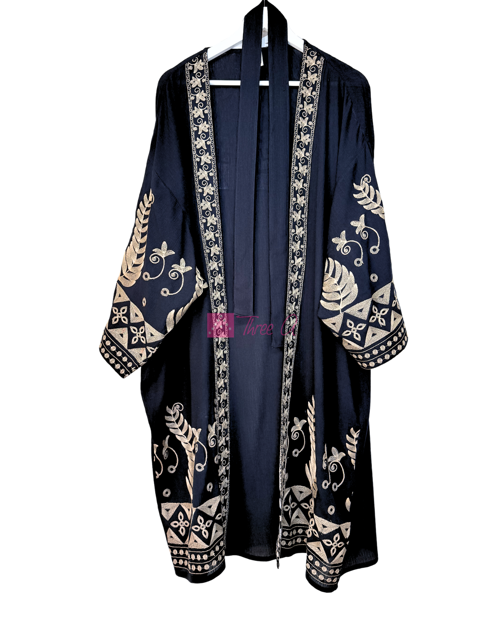EXCLUSIVO Kimono Nory, con bordados en dorado en todo el frontal y mangas, cinturón para anudar al gusto