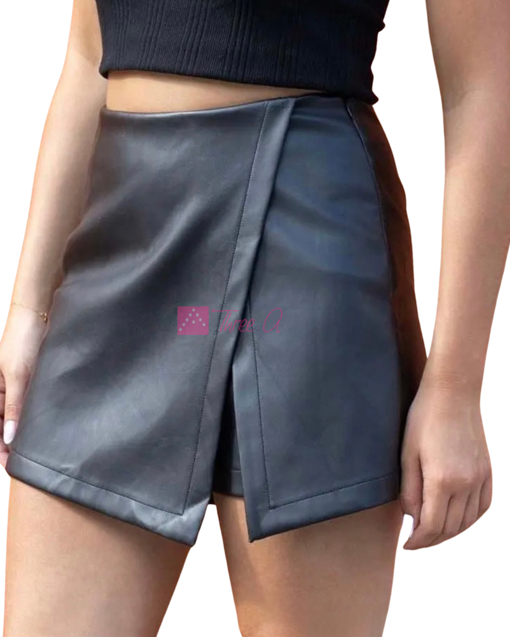 Comodísima Falda-Pantalón Agme efecto piel, con abertura lateral. Cierra con cremallera lateral. Forrada interiormente. Poco elástica.