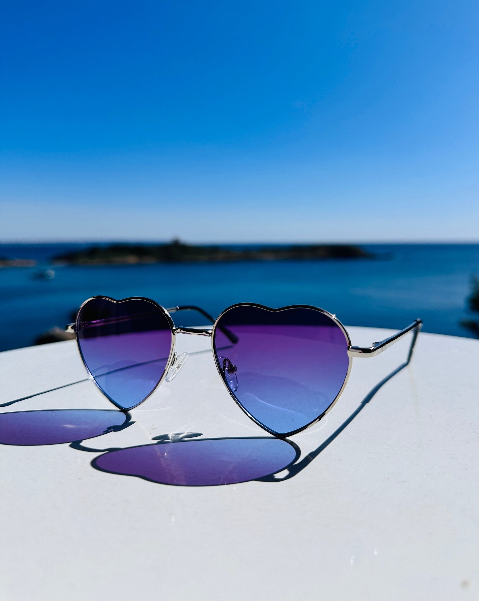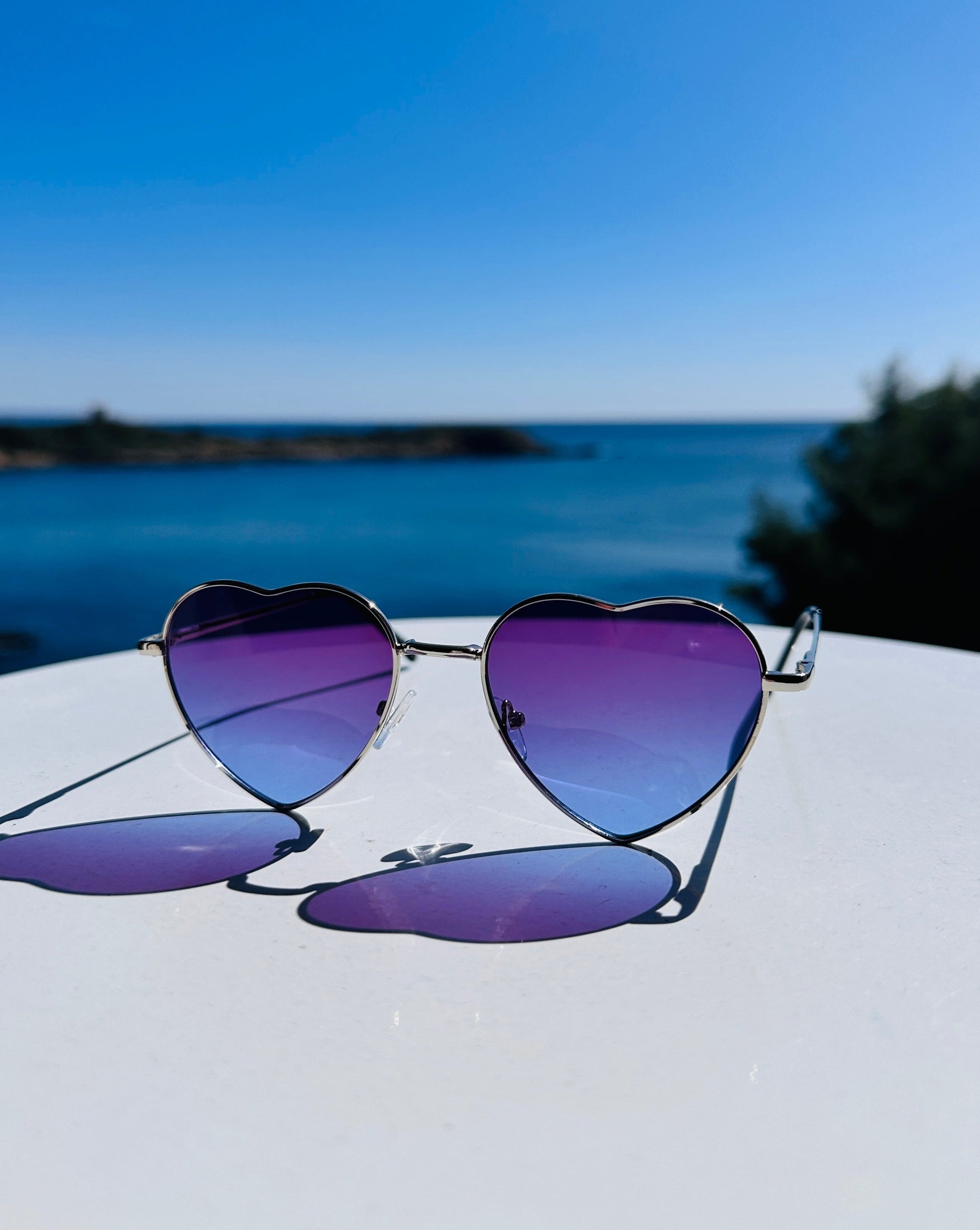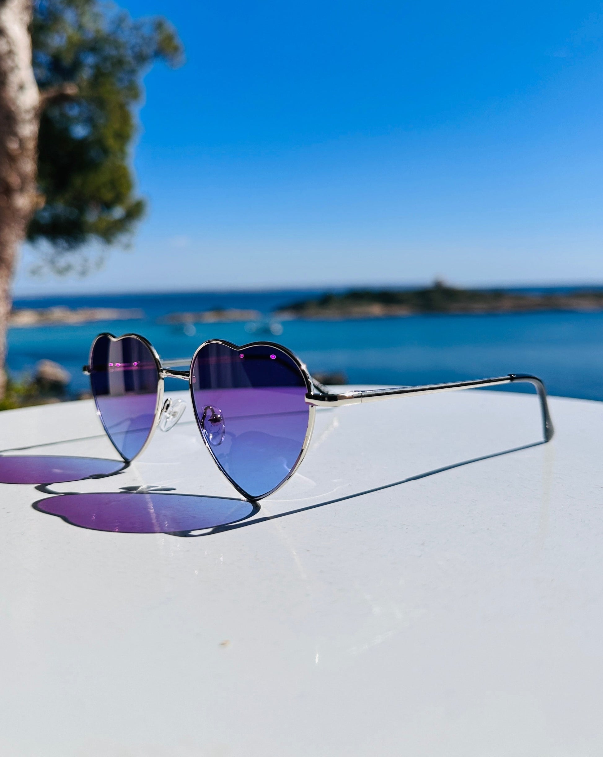 Gagas con montura de metal plateado y cristal morado, con UV400 de protección