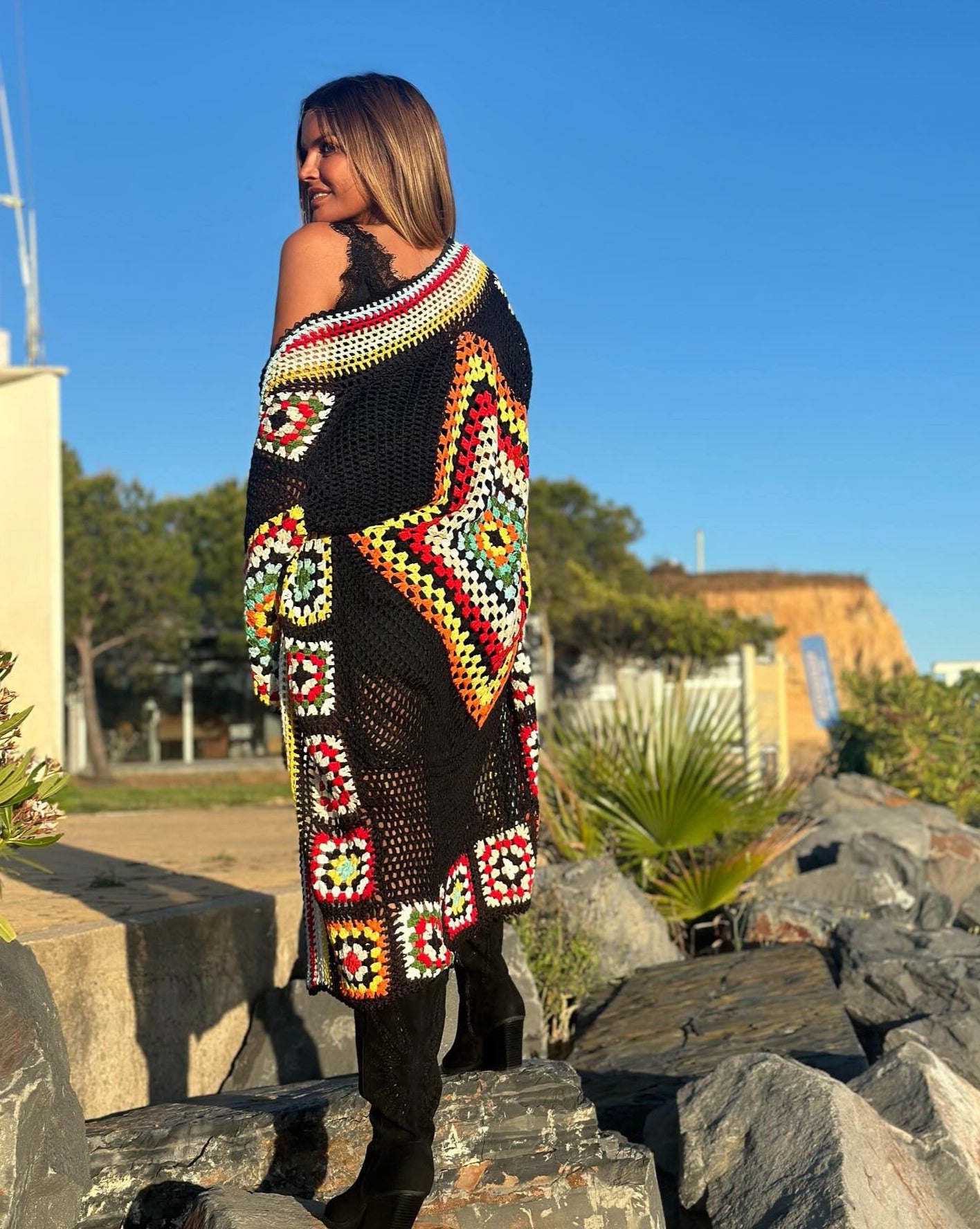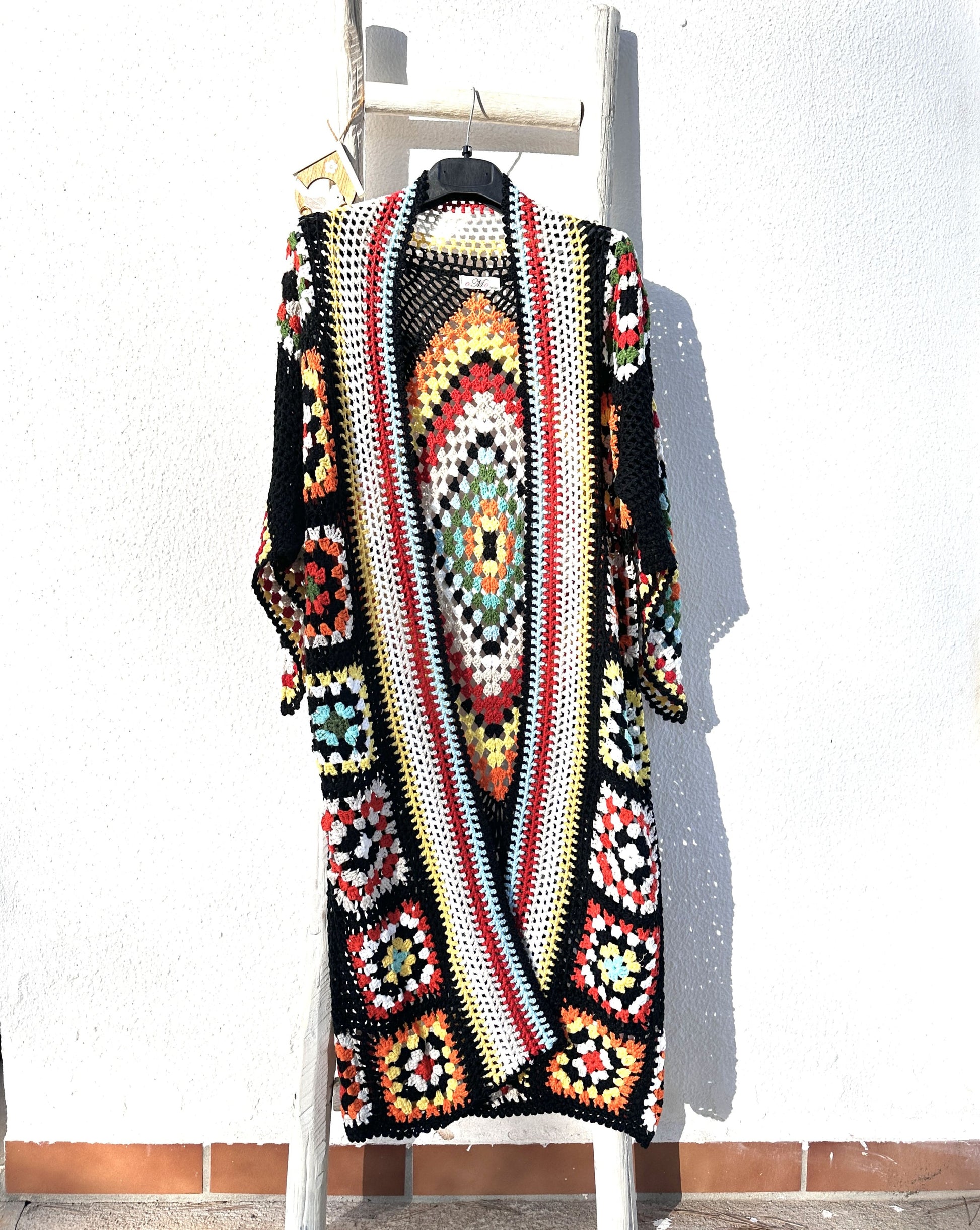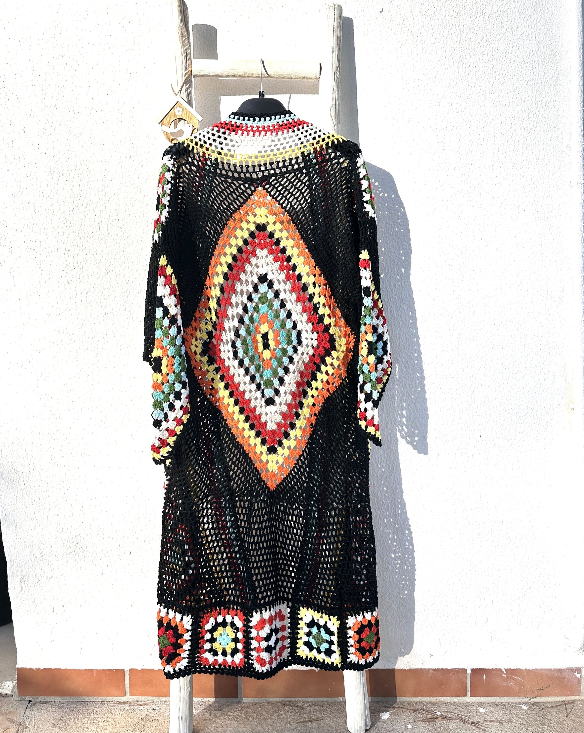 Impresionante Kimono Anais realizado a mano en Crochet, mangas terminadas en pico. Prenda muy versátil, te combina con todo.