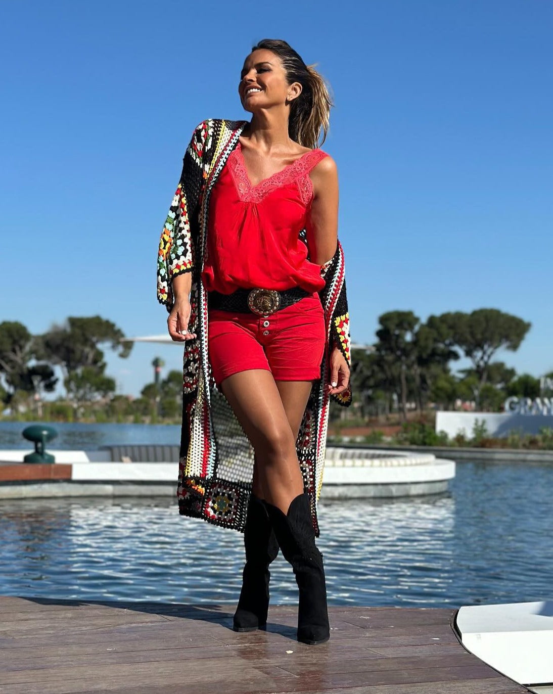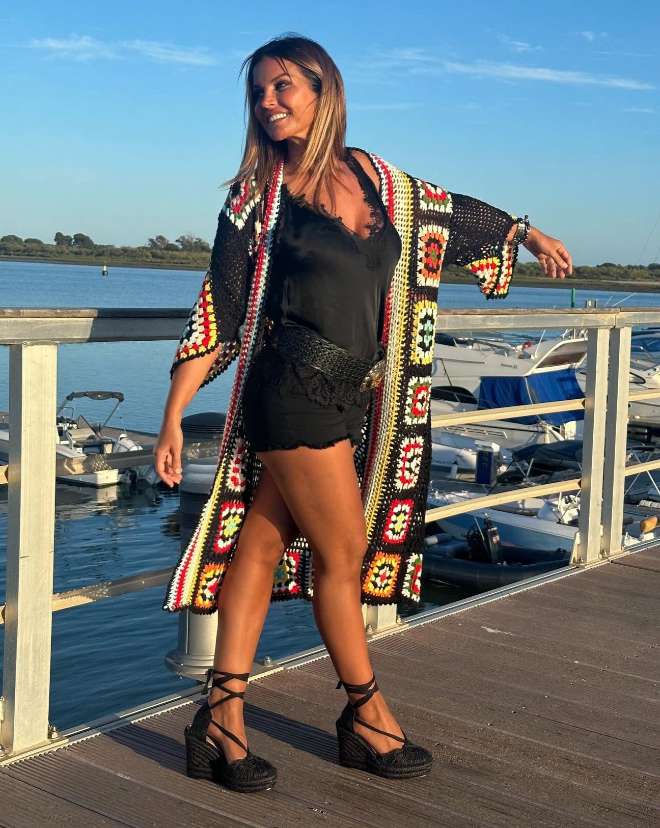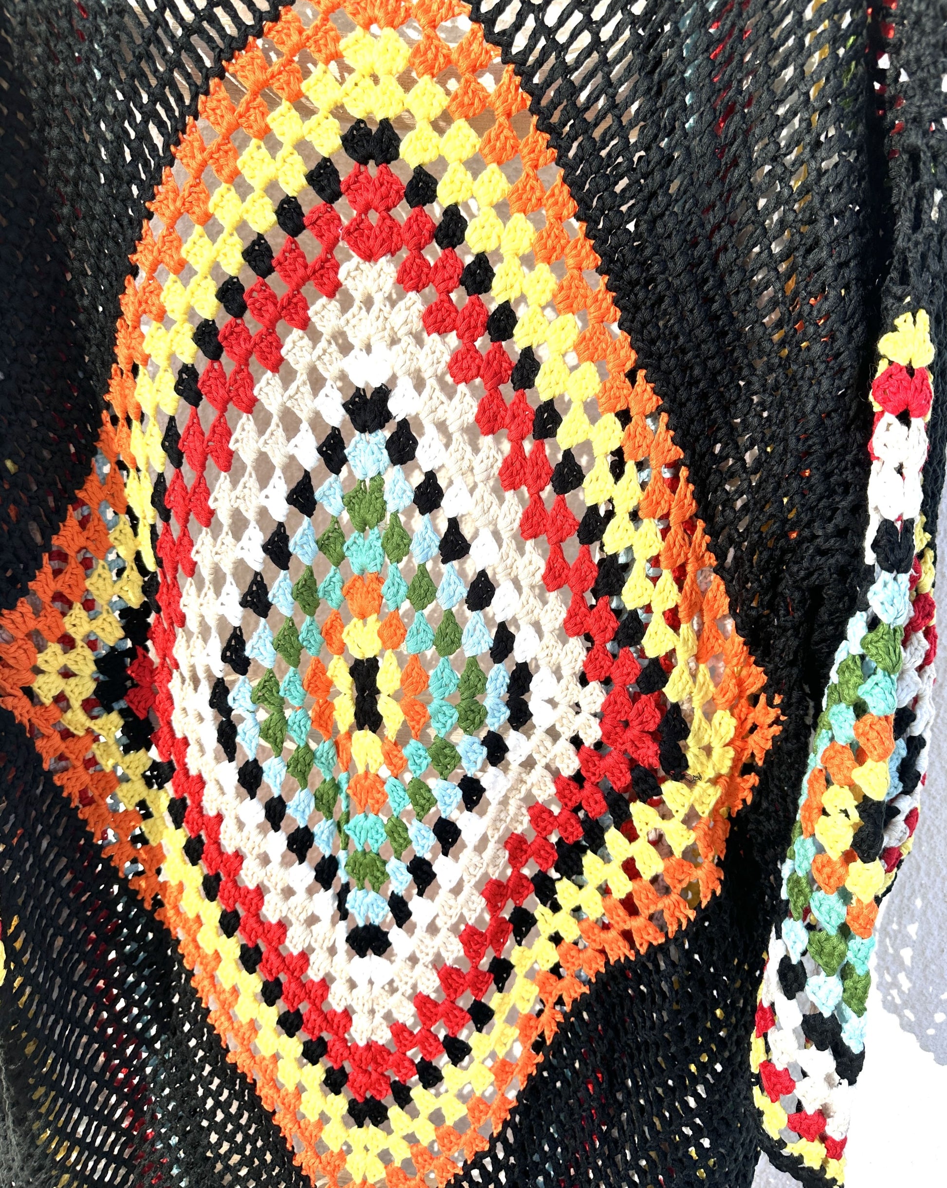 Impresionante Kimono Anais realizado a mano en Crochet, mangas terminadas en pico. Prenda muy versátil, te combina con todo.