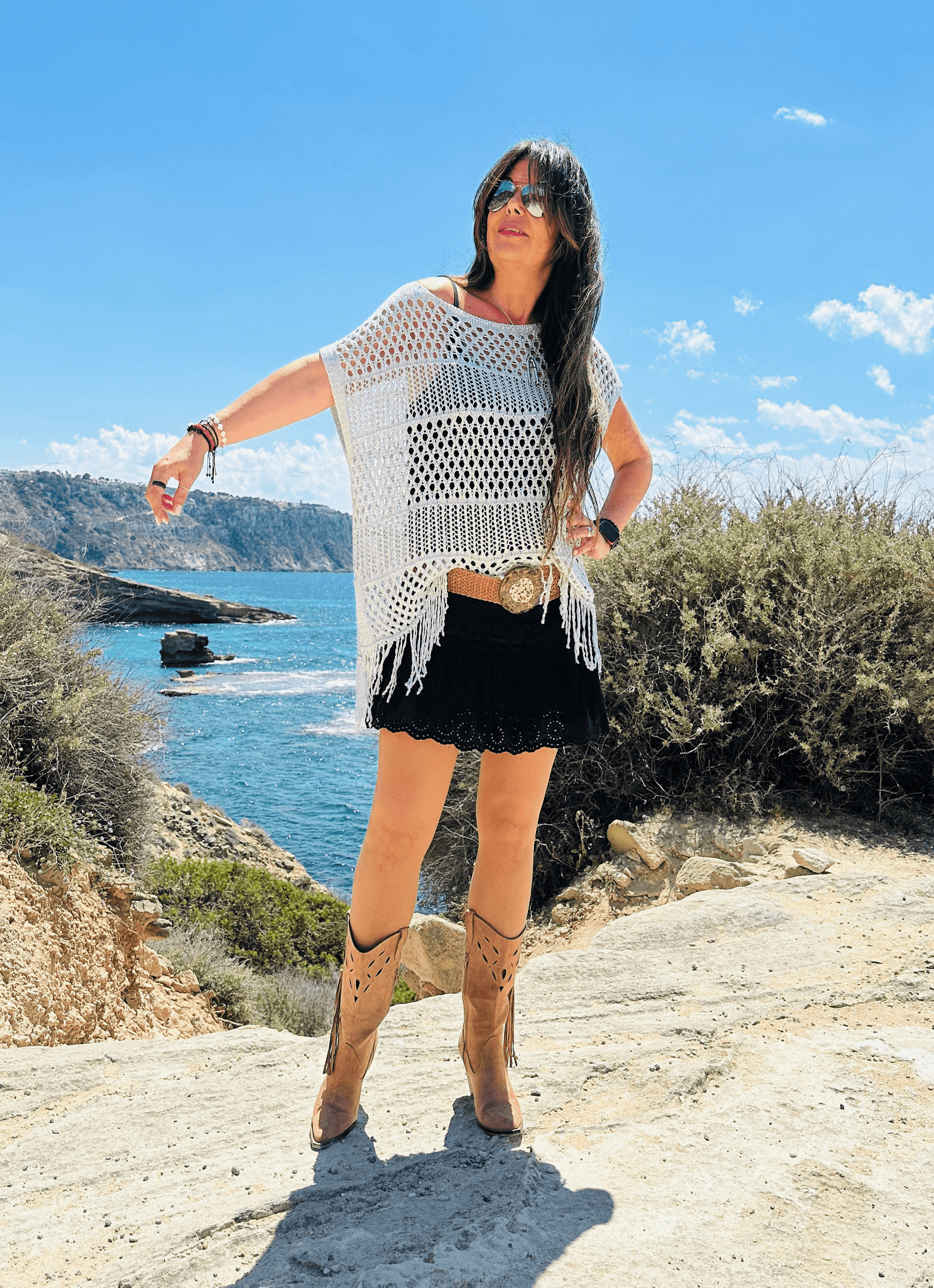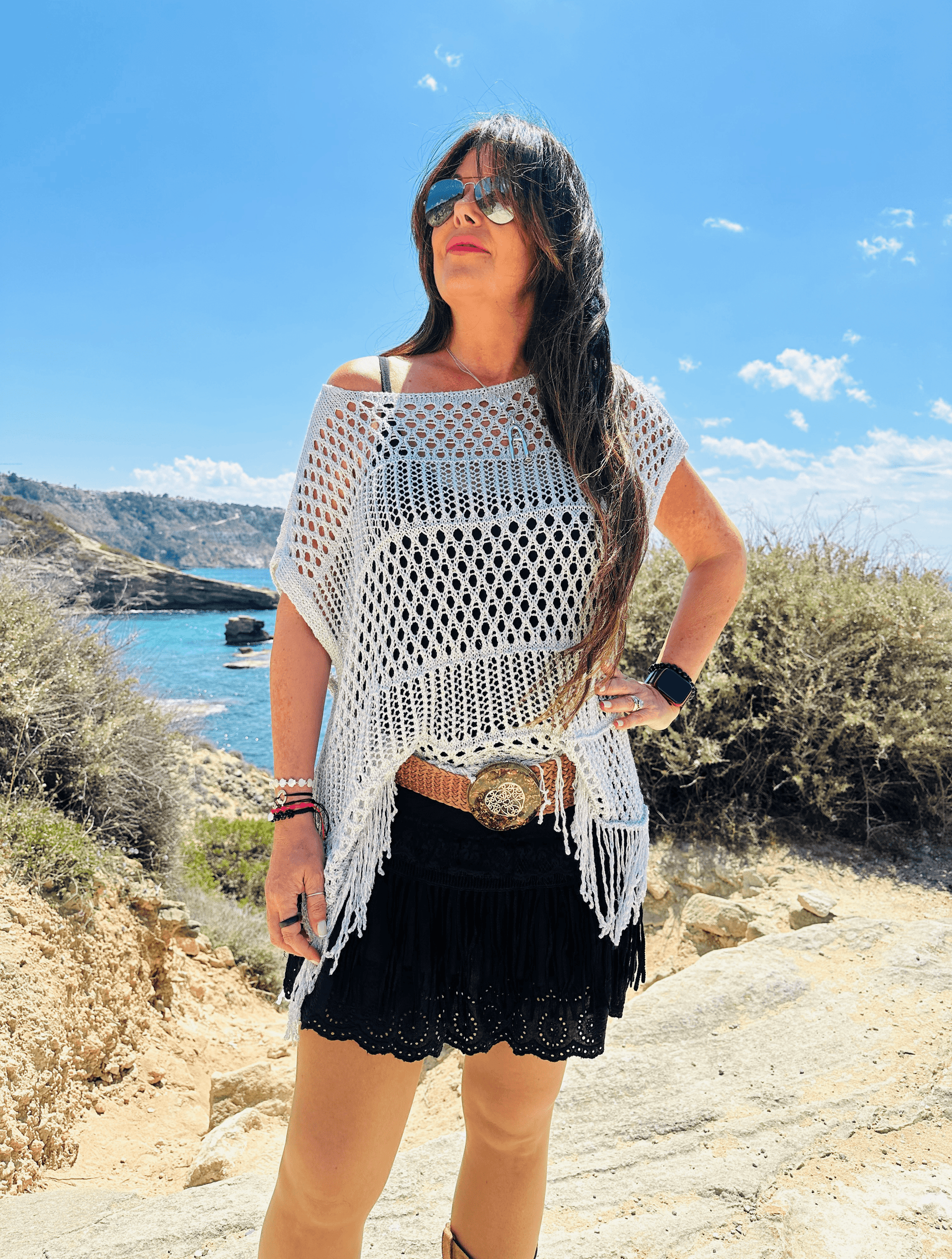 Detalle flecos en el bajo y abertura lateral