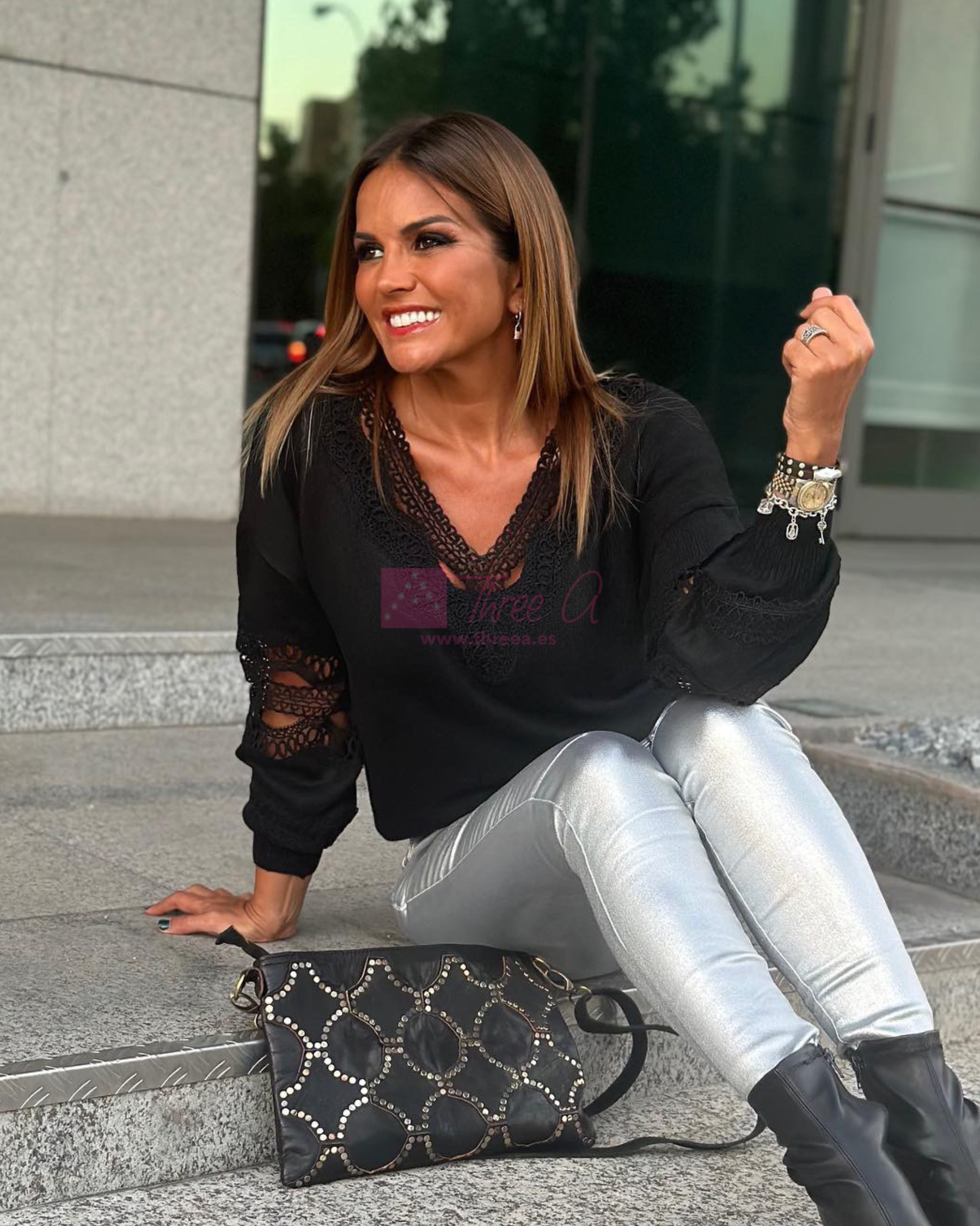 Fantástico Jersey Lencero Xandra con puntilla en el escote y mangas