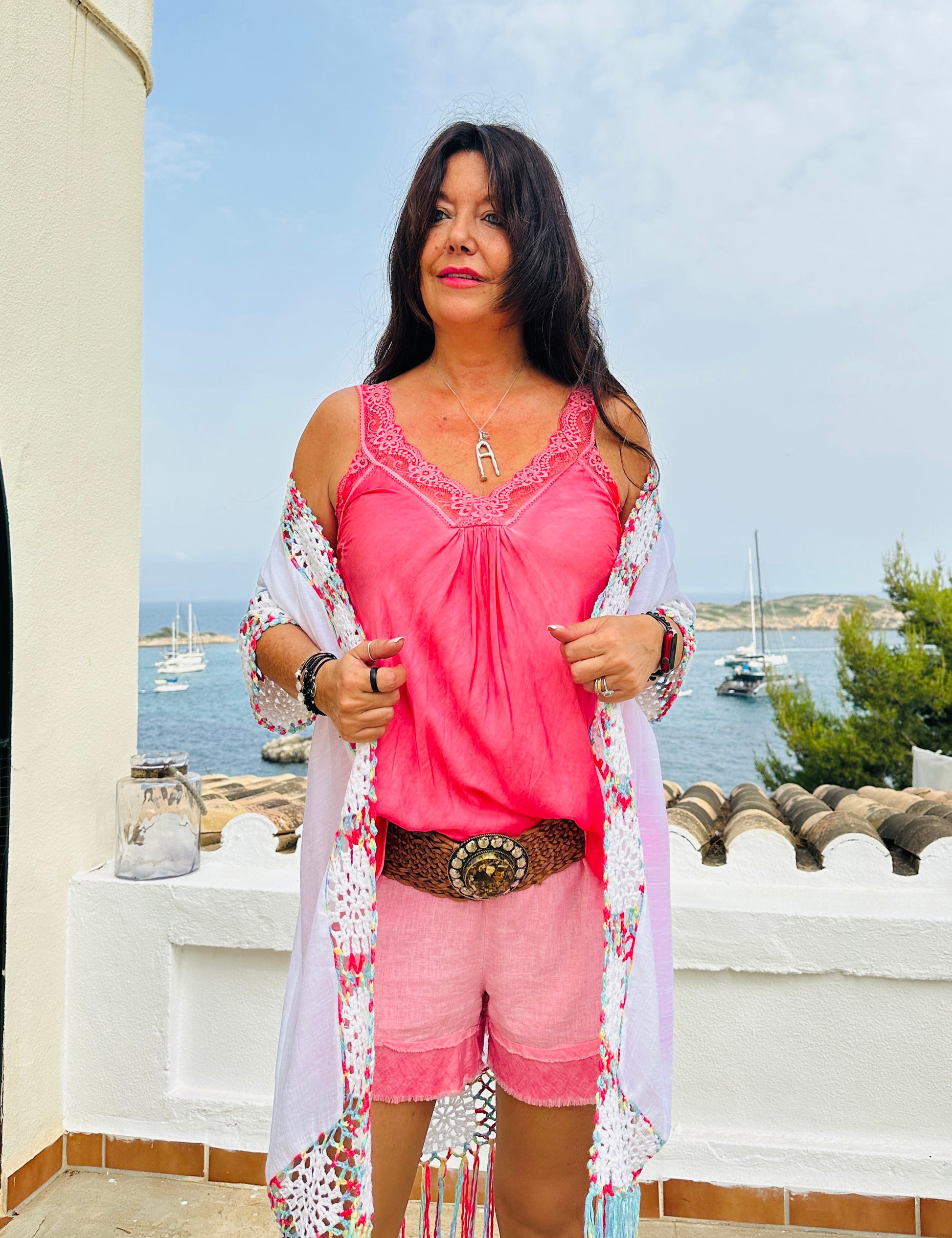 *Debido a los tintes utilizados los colores pueden variar, estando siempre en la misma gama, no es uniforme, puede haber cambios de tonalidades dentro de una misma prenda o puede haber motitas o manchas derivadas del mismo tinte, por lo que no se considera tara. Puede desteñir, se recomienda dejar en remojo por primera vez con sal y por separado durante unas horas, para fijar el color.