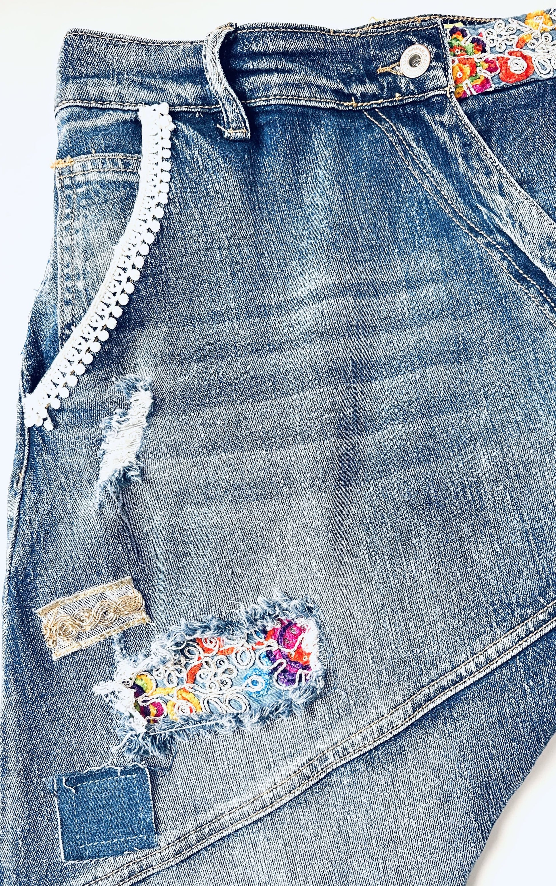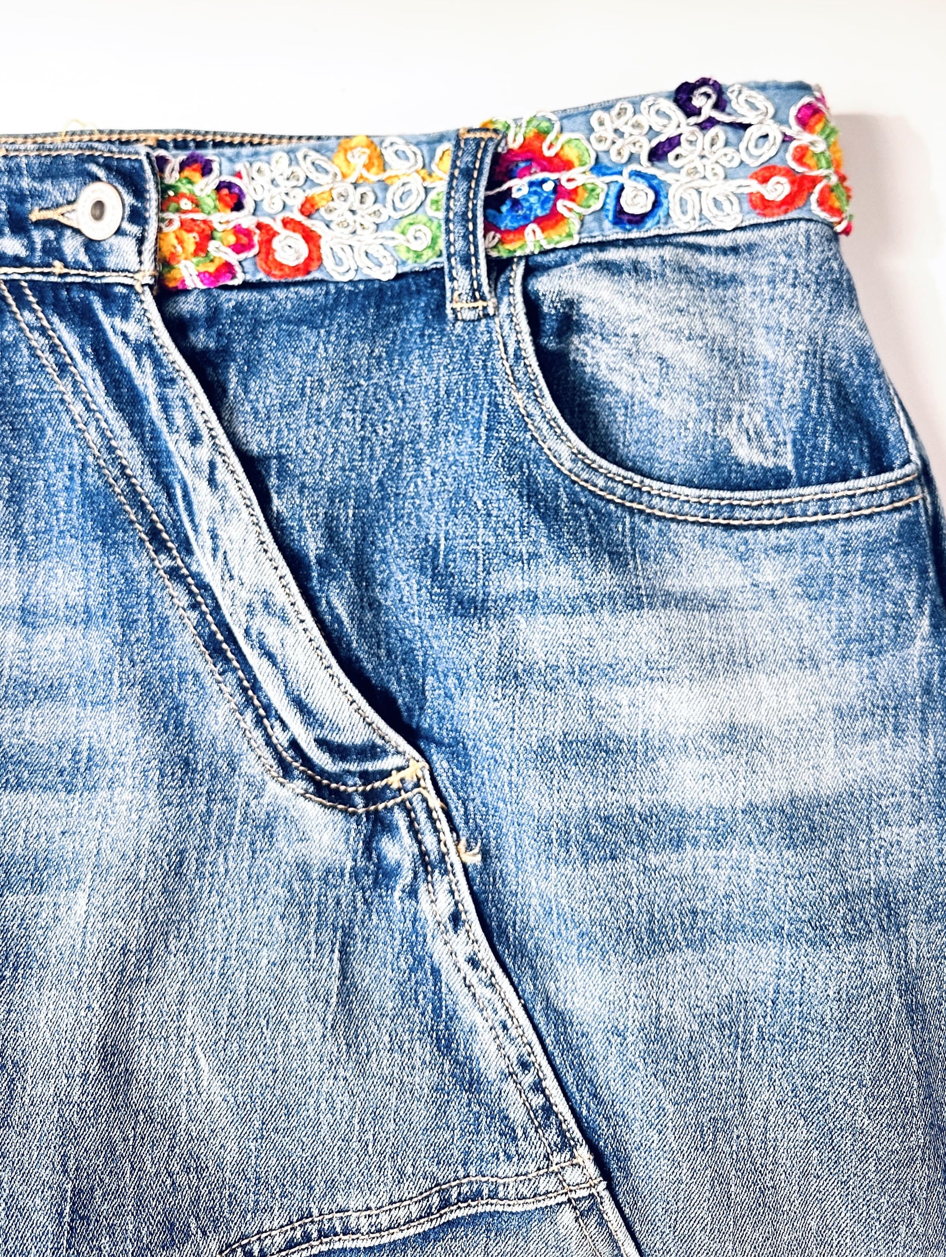 Cierra con botón y cremallera, lleva goma en la cintura en la parte de atrás