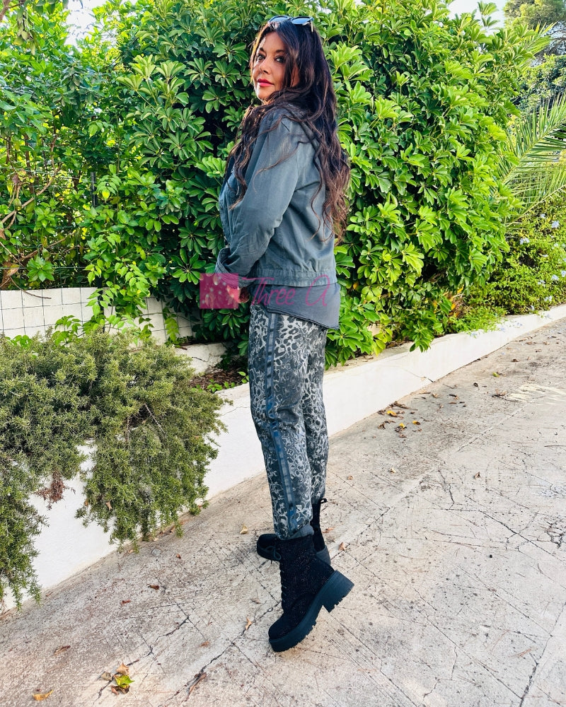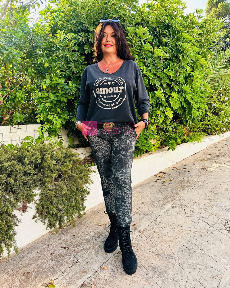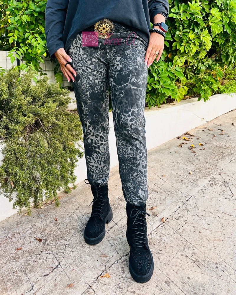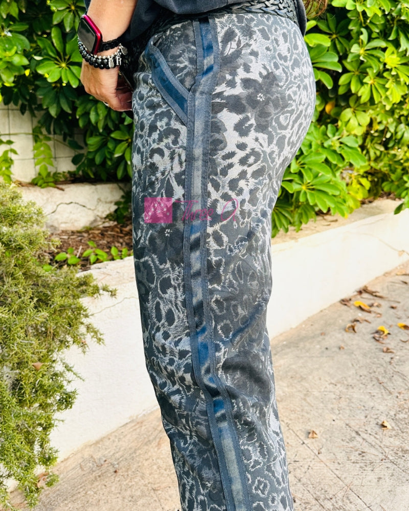 Pantalón Print Toky, dos bolsillos delante, goma y cordón en la cintura, detalle lateral y bolsillo en contraste satinado. Elástico