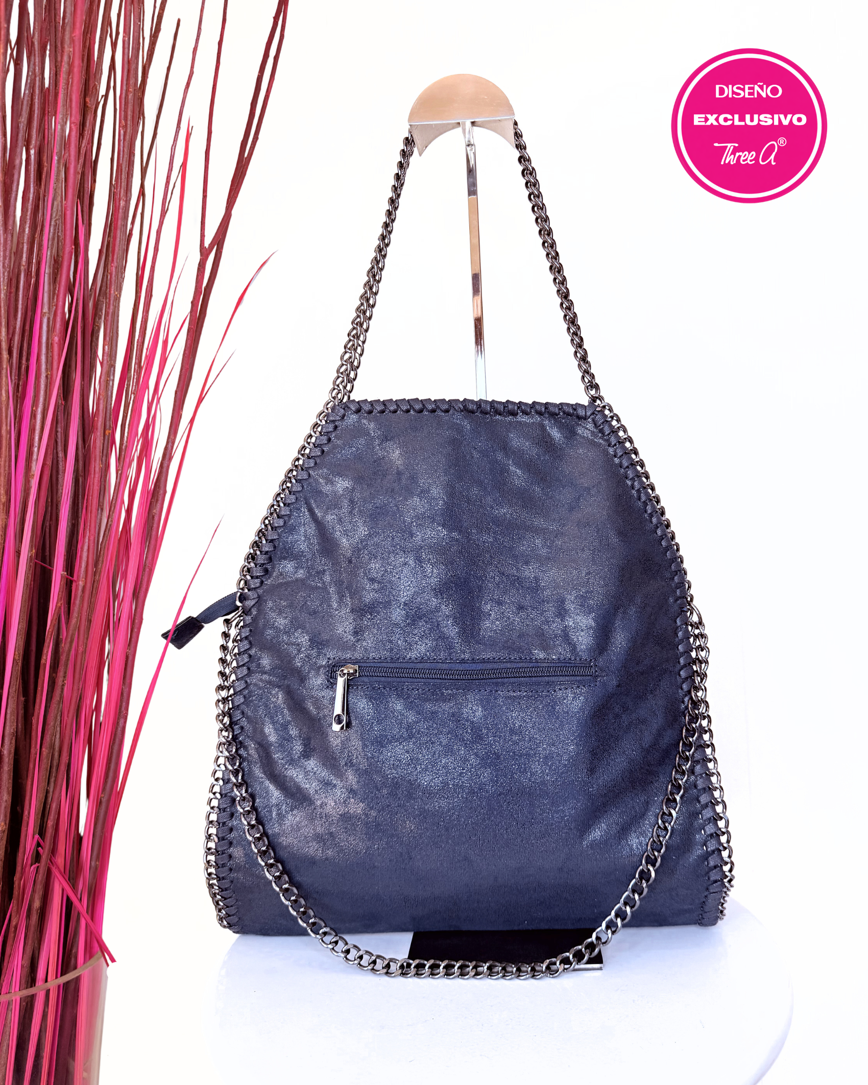EXCLUSIVO Three A® Bolso Catrina Chic de polipiel con diseño versátil de 2 posiciones. Su tejido con ligero acabado brillante aporta un toque elegante y sofisticado.